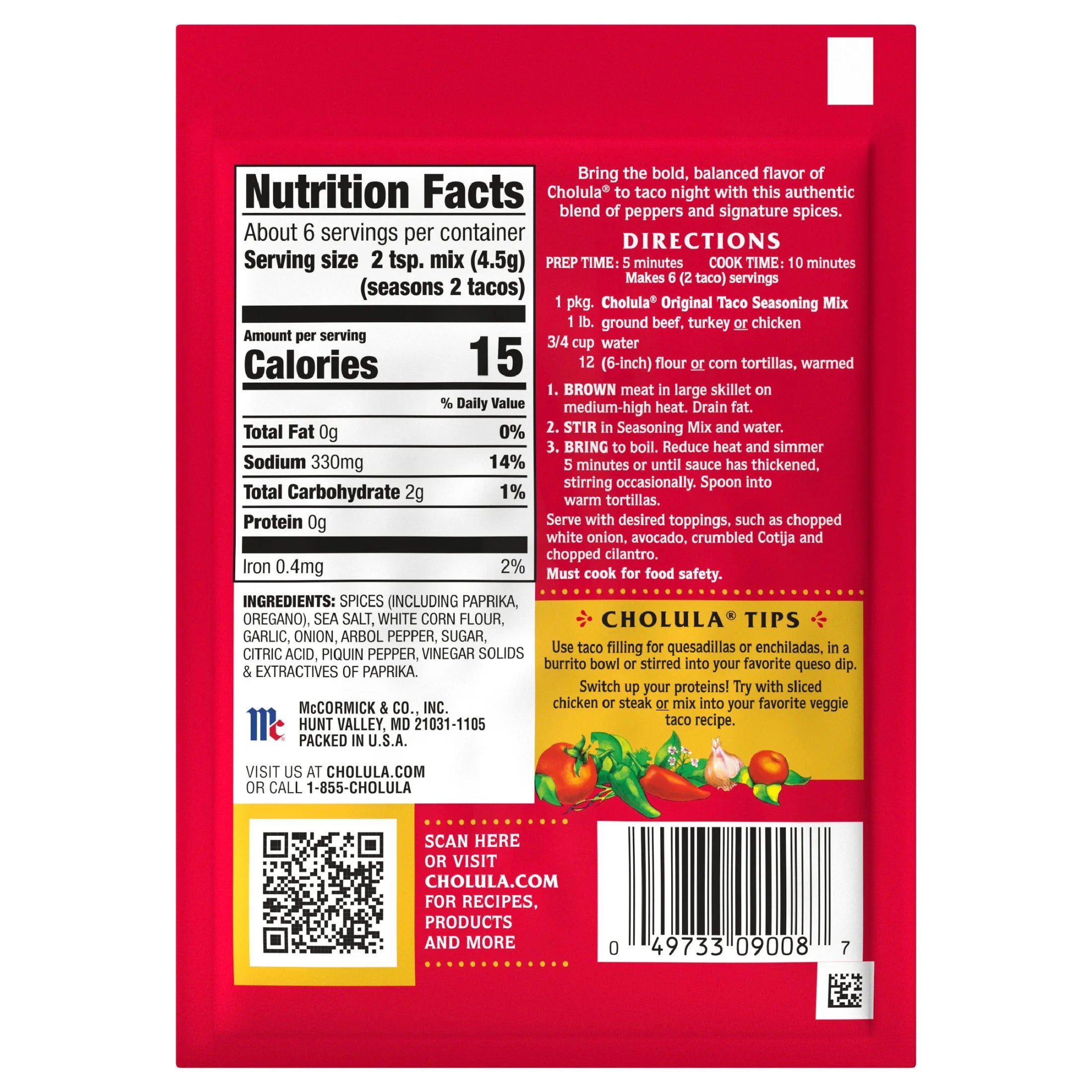 • Taco seasoning with the bold, balanced flavor and medium heat of Cholula Original Hot Sauce