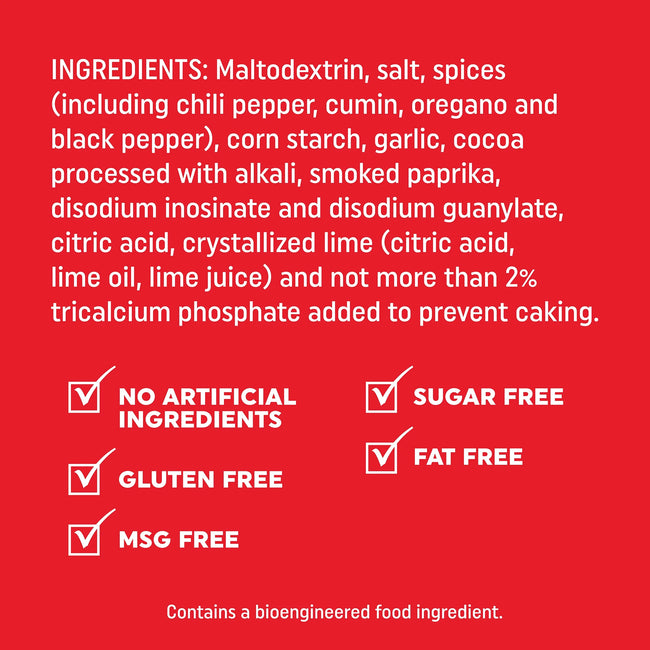 - Our taco seasoning mix is the perfect blend of pure ground chiles, cumin, Mexican oregano, and a pinch of cinnamon and cocoa. Use it as a fajita seasoning mix, chicken seasoning, carnitas seasoning, and beef seasoning. Mexican food seasoning that is MSG Free, Gluten Free, Fat Free and No Artificial Ingredients.