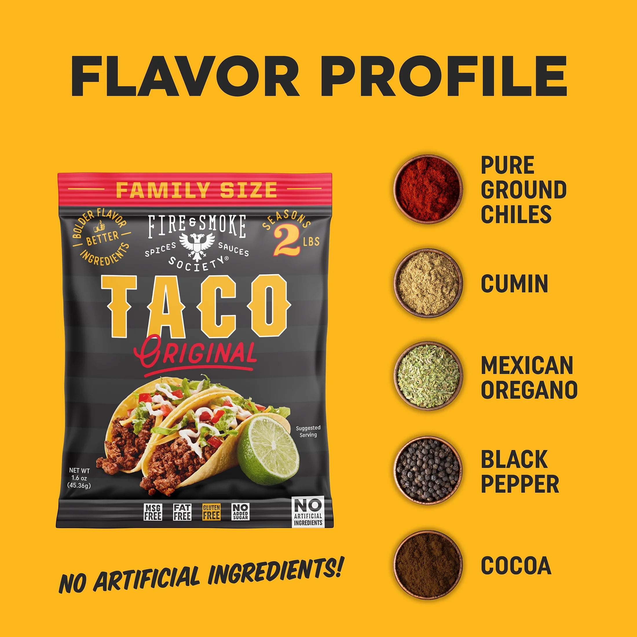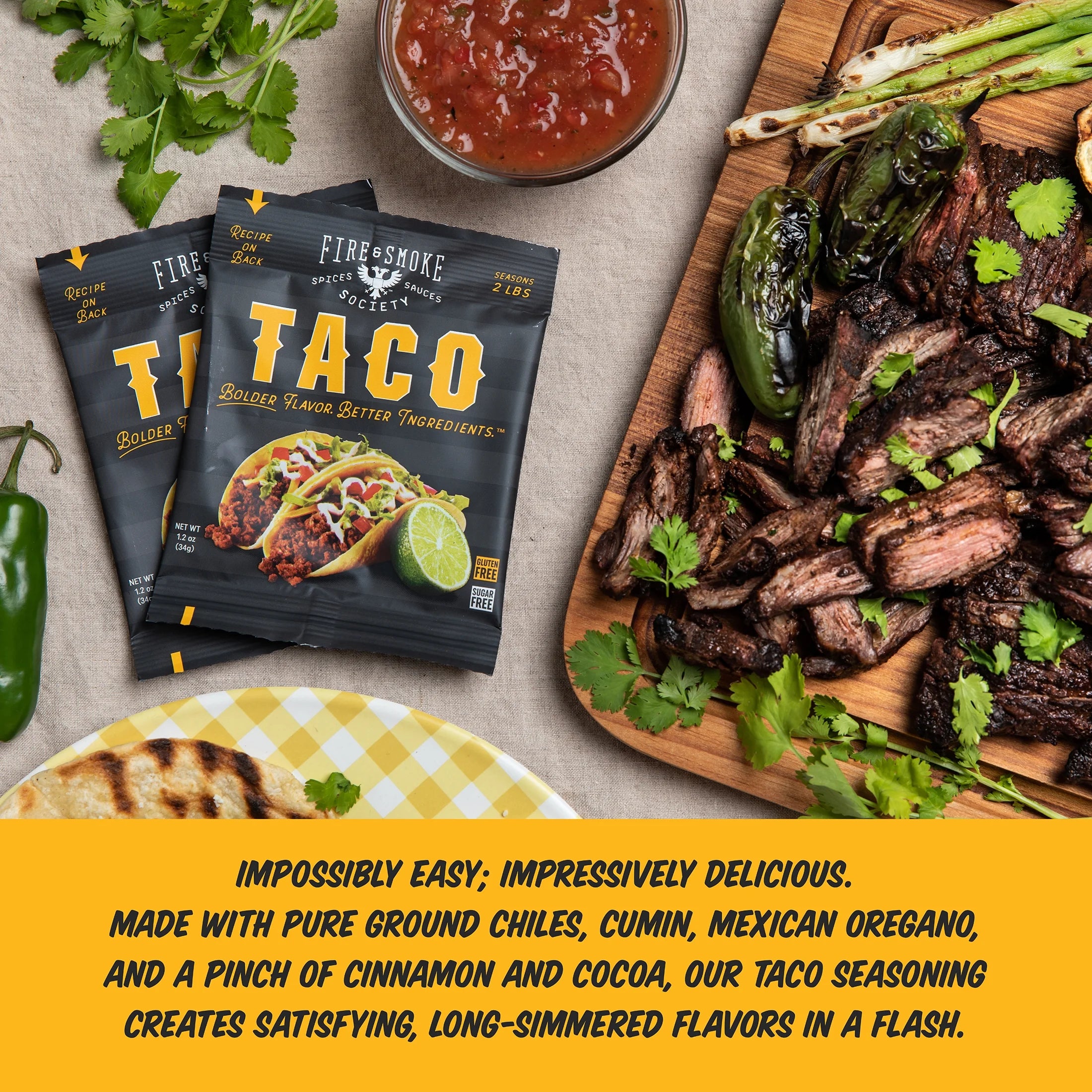 - Impossibly easy and impressively delicious. Our taco seasoning createssatisfying, long-somered flavors ina flash. 1 packet (1.2 oz) seasons 2lbs of meat.