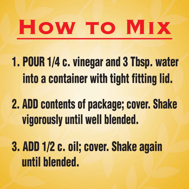 - Combine dry salad dressing mix with water, oil and vinegar for fresh Italian salad dressing