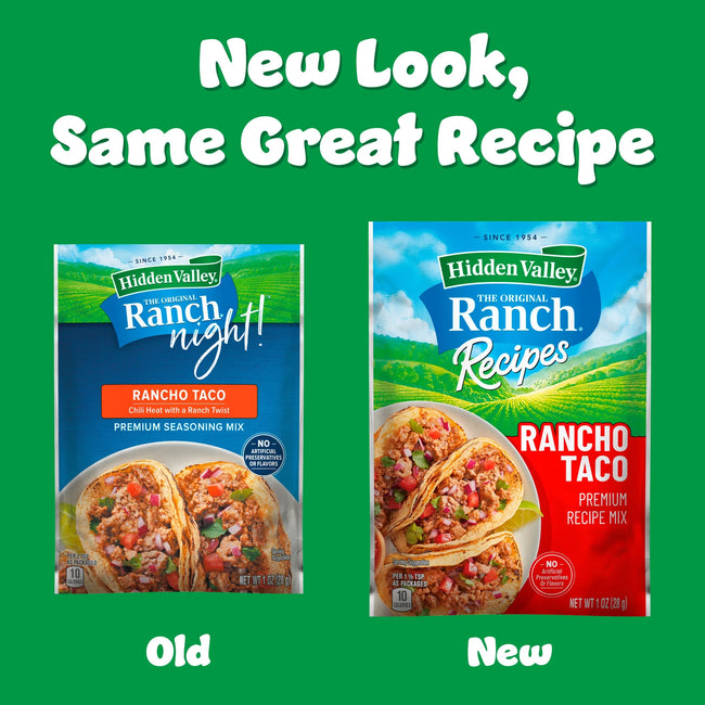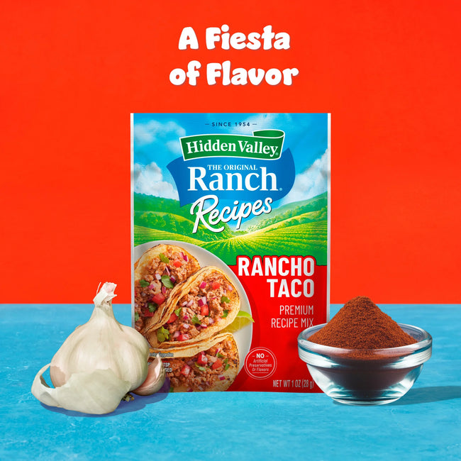 - CONVENIENT RECIPE PACKET: Hidden Valley® Ranch Recipes Rancho Taco Premium Recipe Mix comes in a handy, easy-to-use 1 ounce packet ready to rip open and start cooking