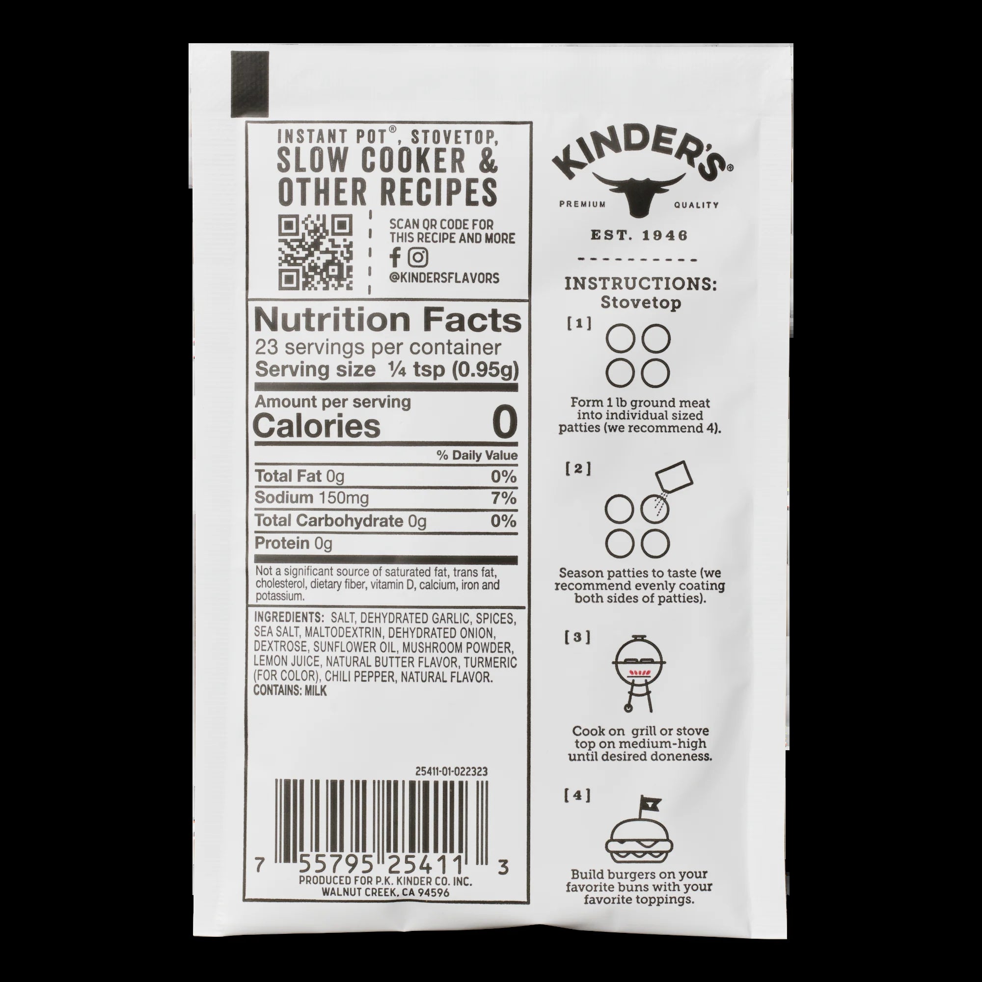 We have to admit it…there might not be anything better than a great burger, but that didn’t stop us from trying. We started with a great all-purpose burger seasoning with sea salt, garlic, and spices and then topped it off with our signature Kinder’s butter blend. Our Buttery Burger Seasoning was designed to make family and friends to say, “oh wow!” And like everything else we make, don’t let the burger in the name stop you from putting it on steak, fish, vegetables and anything else you can think of. We can’t wait for you to try it.