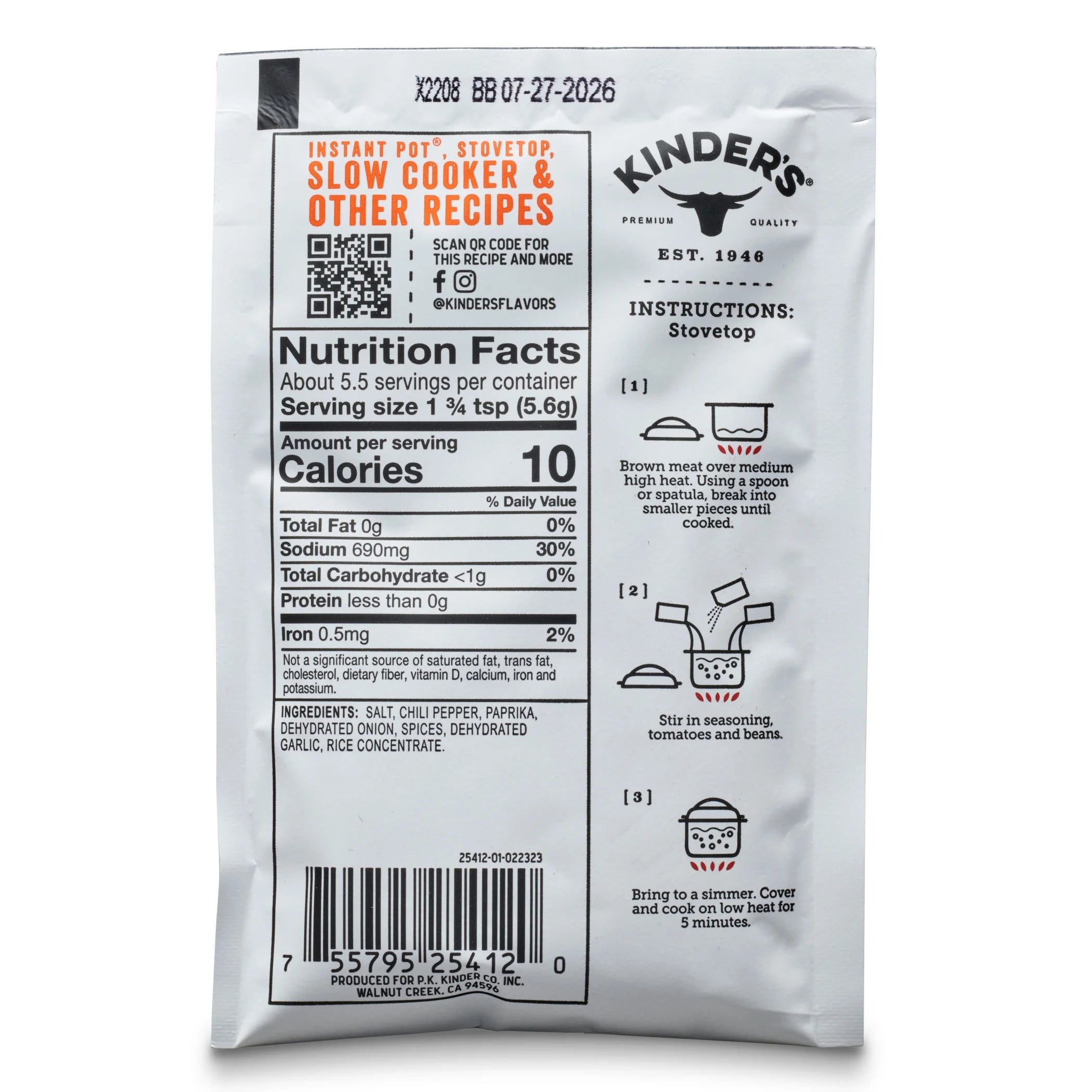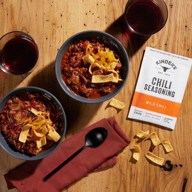 Kinder’s Mild Chili Seasoning is our take on the American classic that makes getting bold chili flavor easier than ever. We combine a rich blend of chili peppers, onions, garlic, and spices for a signature chili flavor that we think the whole family will love. It works great with beef, chicken or turkey and our simple recipe is ready in 20 minutes. It’s great for stovetop, slow cooker and more. We can’t wait for you to try it.