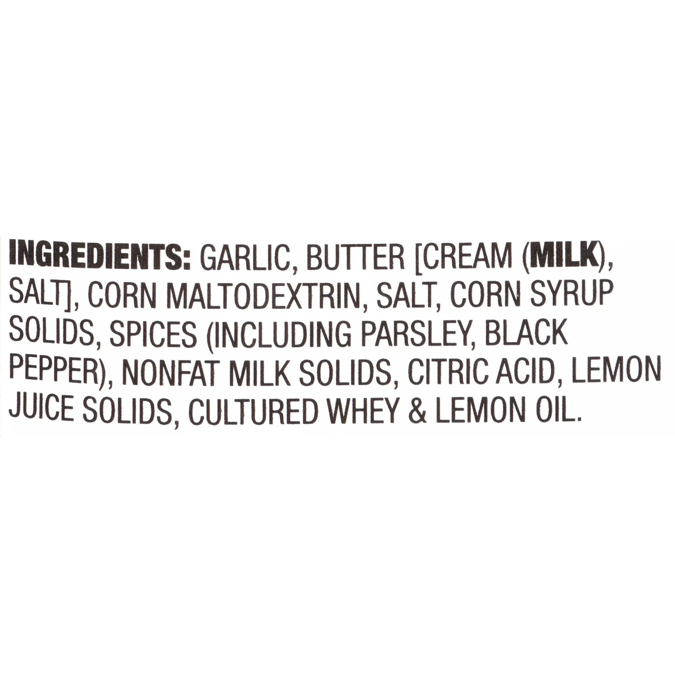 Garlic, Butter [Cream (Milk), Salt], Corn Maltodextrin, Salt, Corn Syrup Solids, Spices (Including Parsley, Black Pepper), Nonfat Milk Solids, Citric Acid, Lemon Juice Solids, Cultured Whey & Lemon Oil./div>