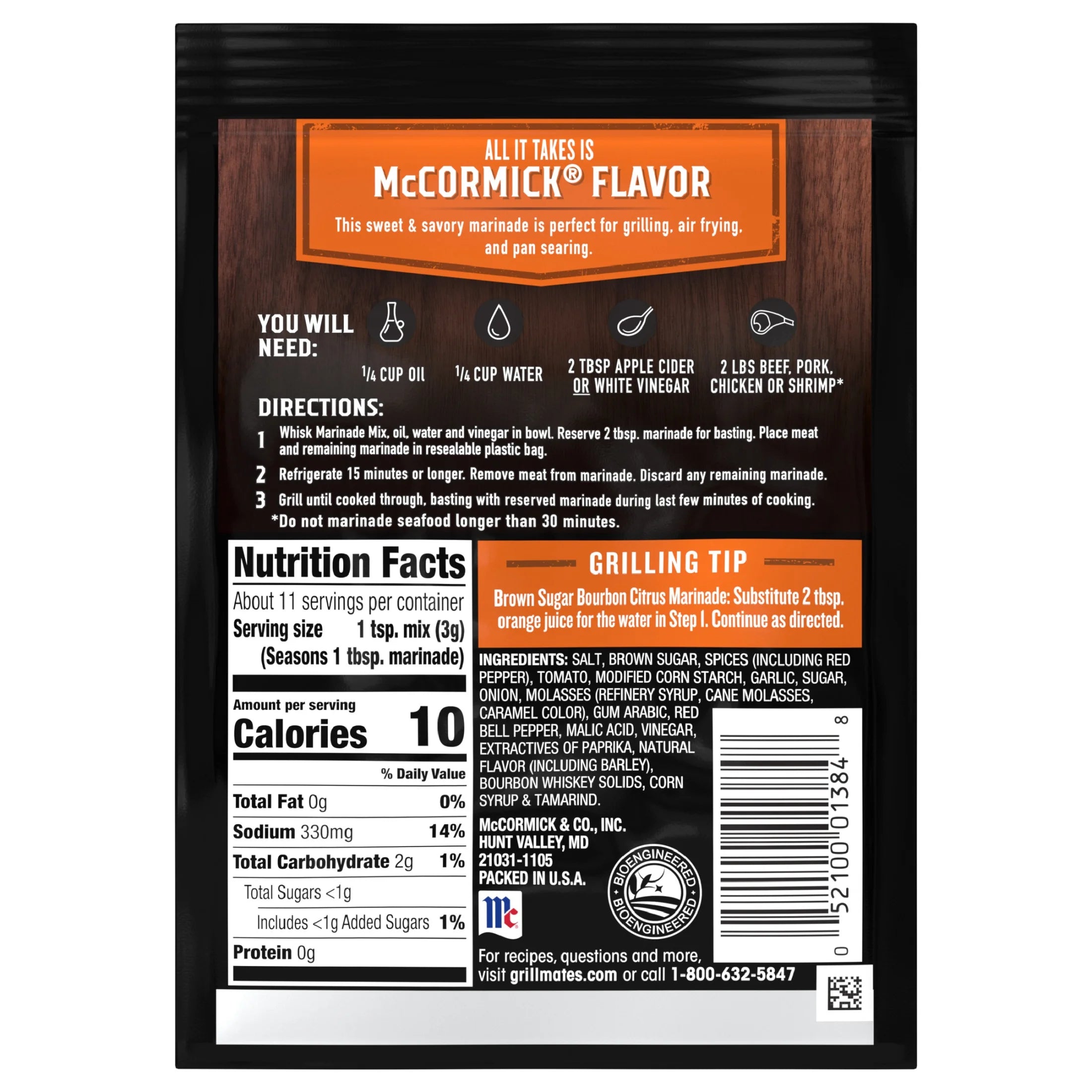 - McCormick Grill Mates Gluten Free Brown Sugar Bourbon Marinade, 1.25 oz Envelope