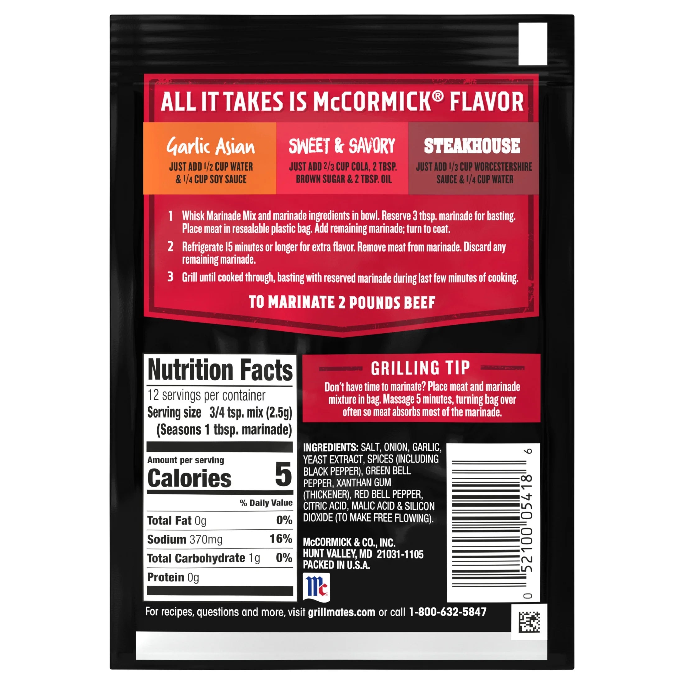 - McCormick Grill Mates Gluten Free Griller's Choice Beef Marinade Mix, 1.12 oz Envelope