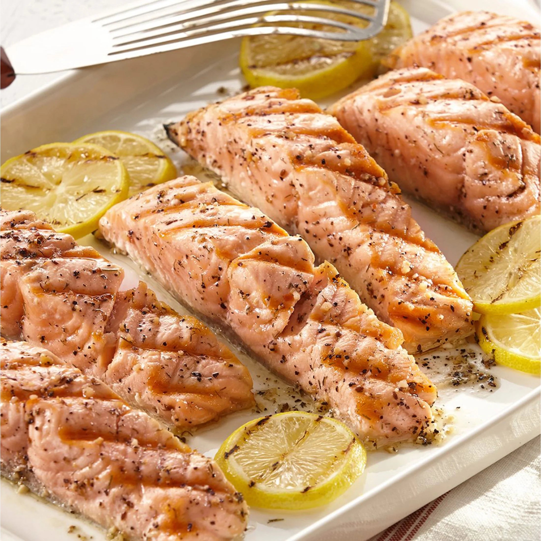 • Marinade seasoning features a blend of coarsely ground pepper and garlic