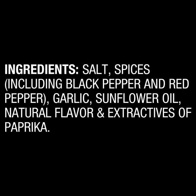 Salt, Spices (Including Black Pepper and Red Pepper), Garlic, Sunflower Oil, Natural Flavor and Extractives of Paprika./div>