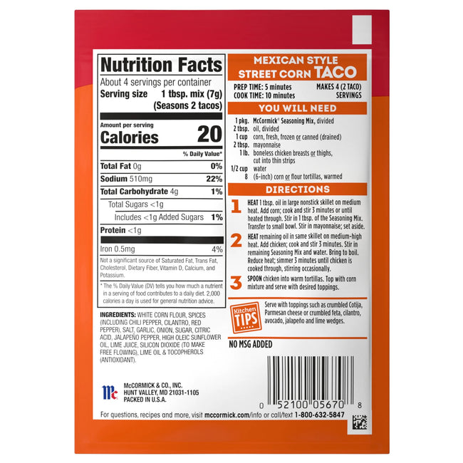 - McCormick Mexican Style Street Corn Taco Seasoning Mix, 1 oz