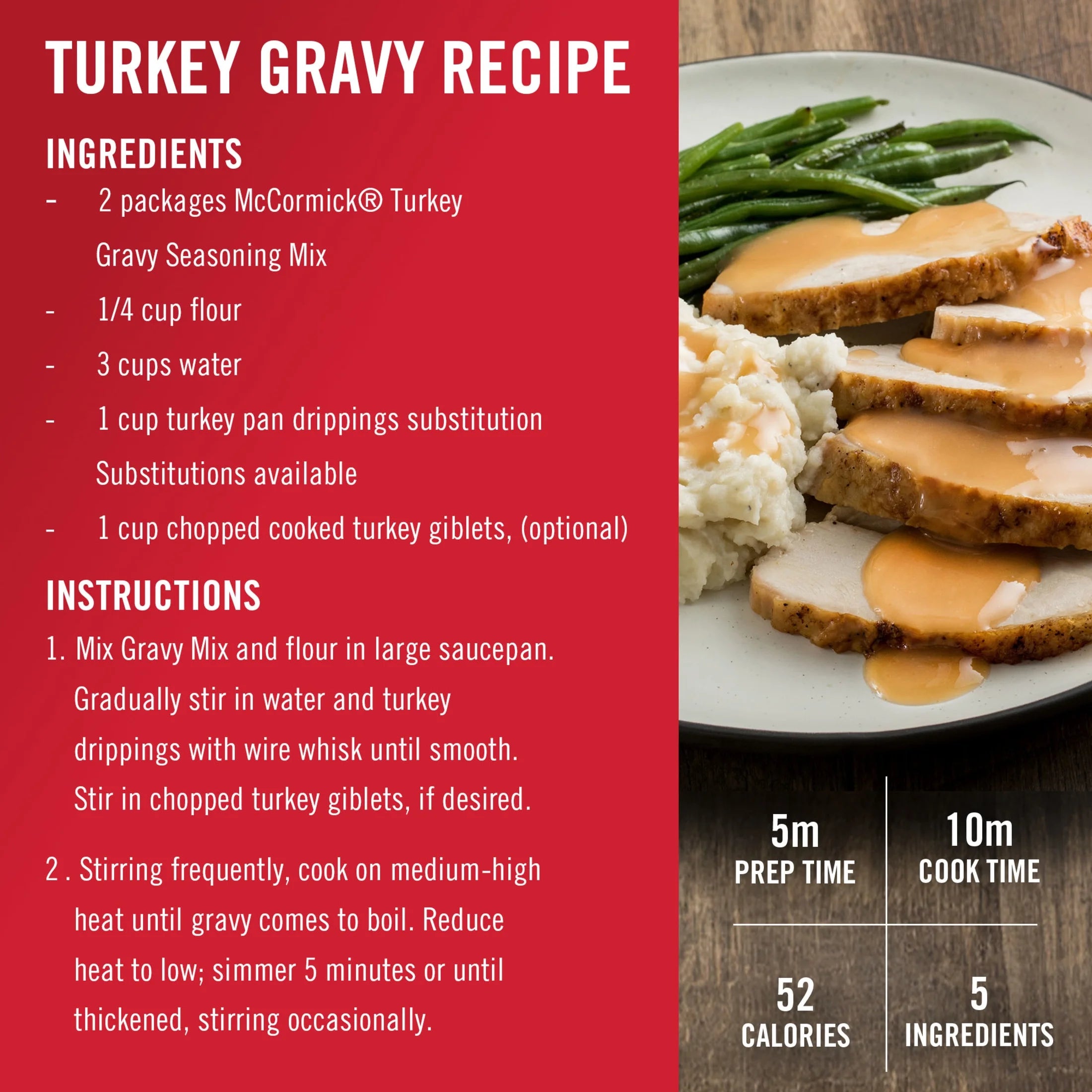 - TASTE YOU CAN TRUST: Made with an expert blend of McCormick spices and natural flavors, Turkey Gravy Seasoning Mix adds savory flavor to holiday sides and mains.
