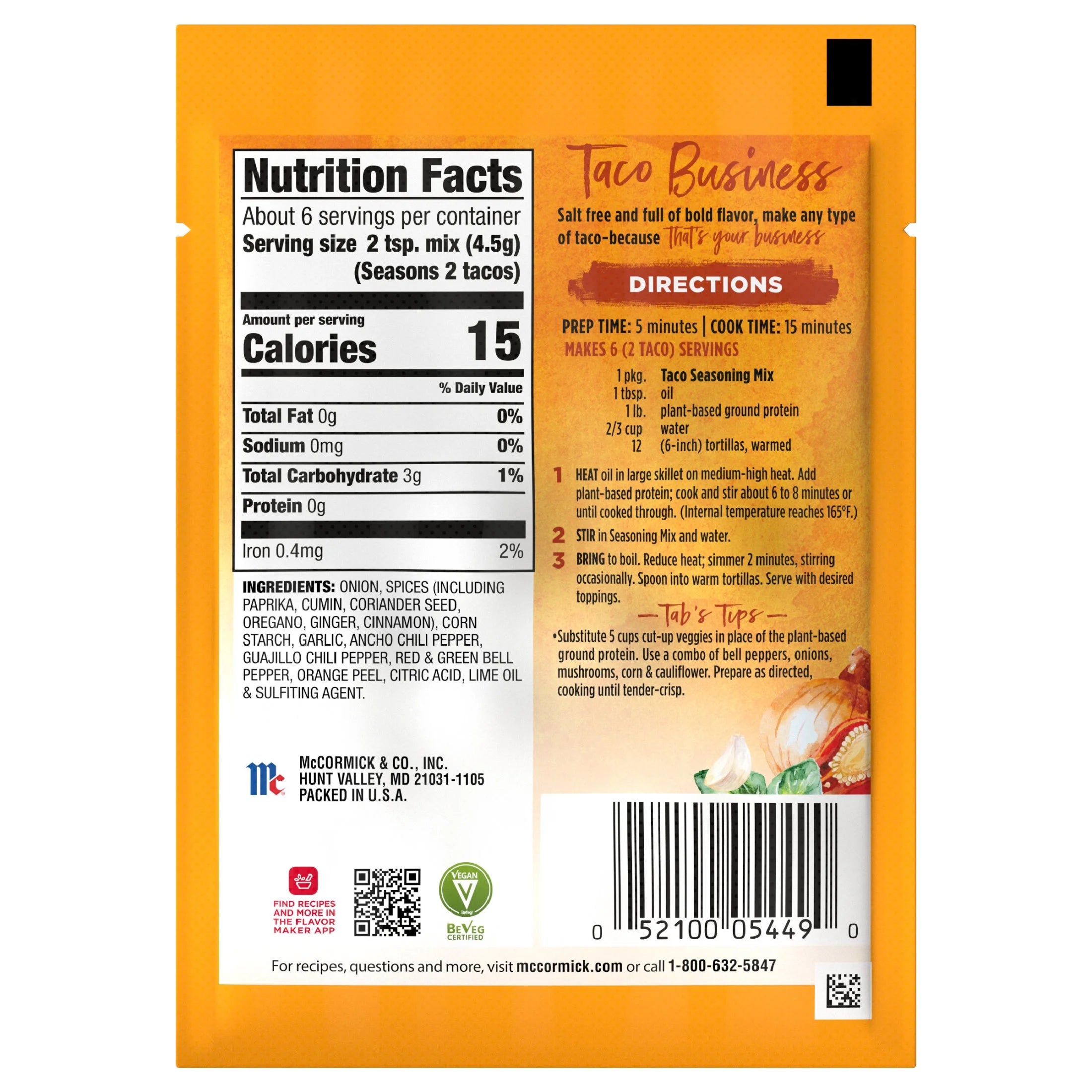 - McCormick Salt Free Taco Business by Tabitha Brown Seasoning Mix, 1 oz Envelope