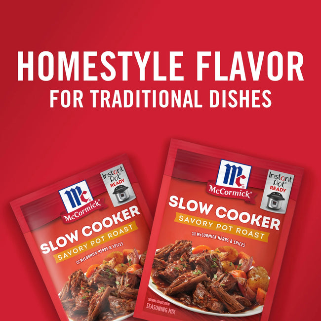 - EASY AND CONVENIENT: McCormick Slow Cooker Savory Pot Roast Seasoning Mix makes preparing a flavorful pot roast a breeze. Perfect for slow cookers and Instant Pots, it saves you time while delivering delicious homestyle flavor.