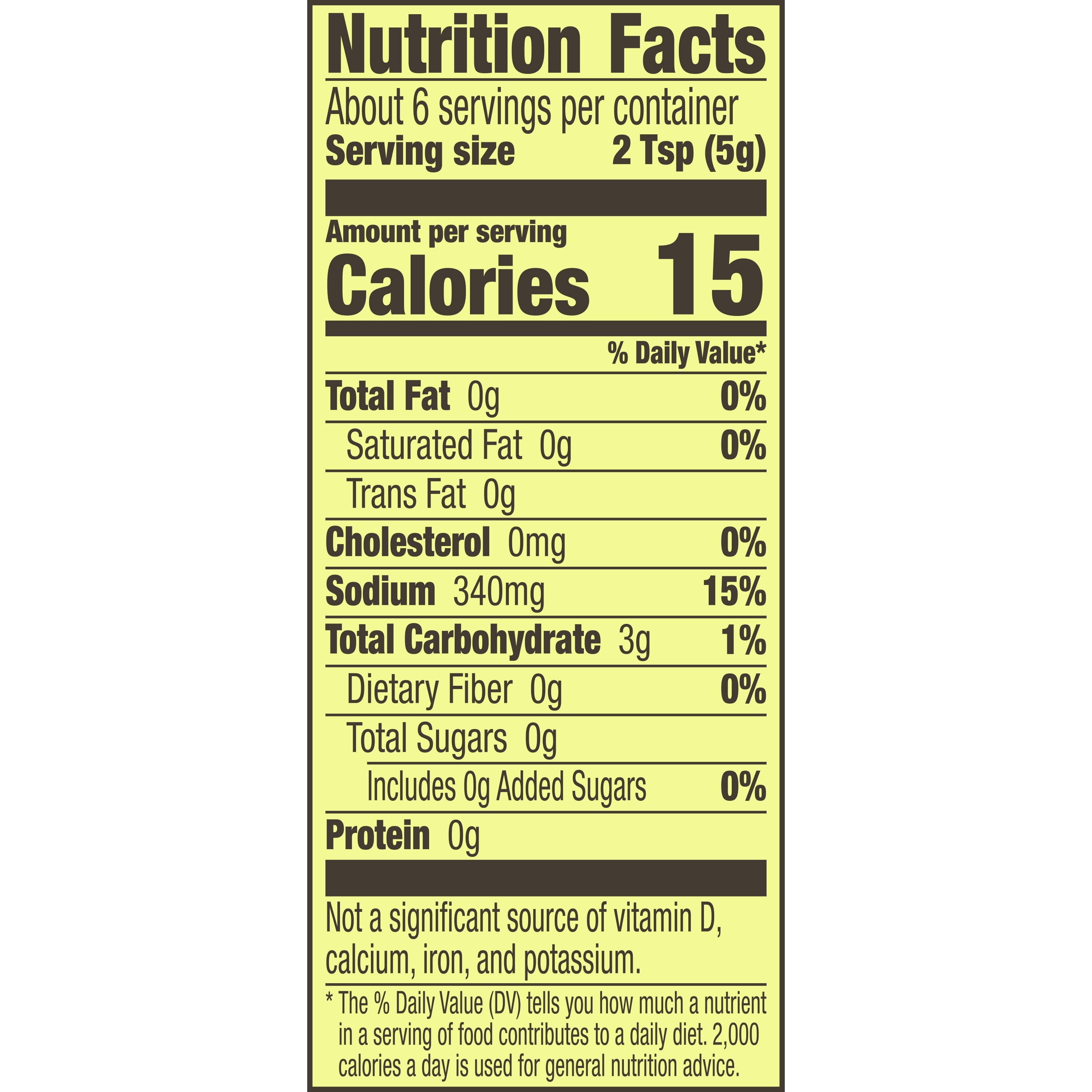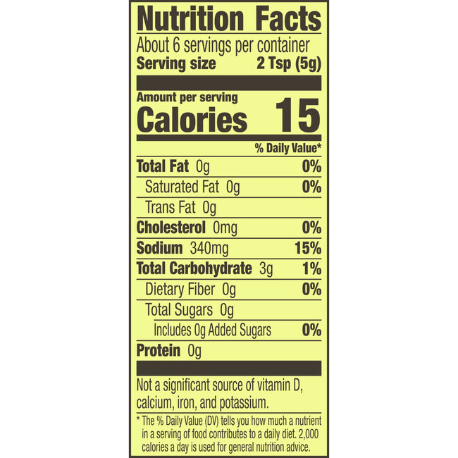 - Per 2 tsp Serving: 15 calories; 0 g sat fat (0% DV); 340 mg sodium (15% DV); 0 g total sugars. Contains bioengineered food ingredients. Learn more at Ask.GeneralMills.com. Established 1938. www.oldelpaso.com. how2recycle.info. Questions or comments? Call 1-800-300-8664 information from the package will be helpful. Visit us at www.oldelpaso.com. Try our other varieties! Taco Seasoning Mix Chicken. Taco Seasoning Mix Mild.