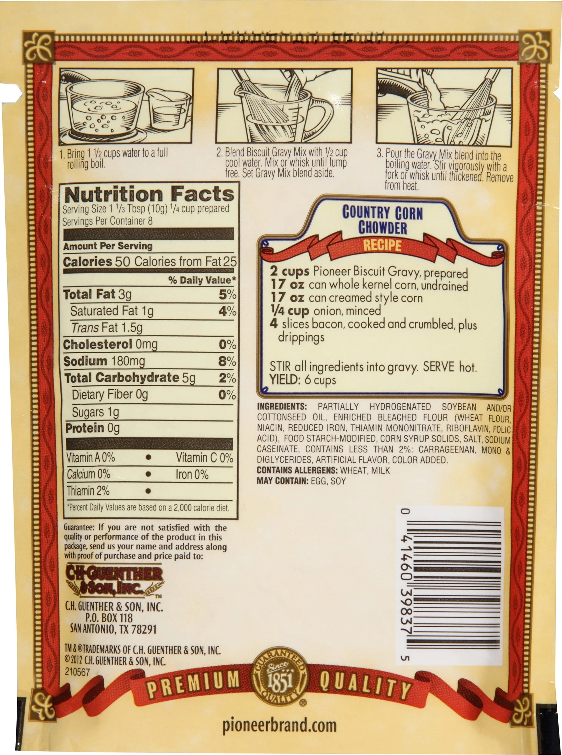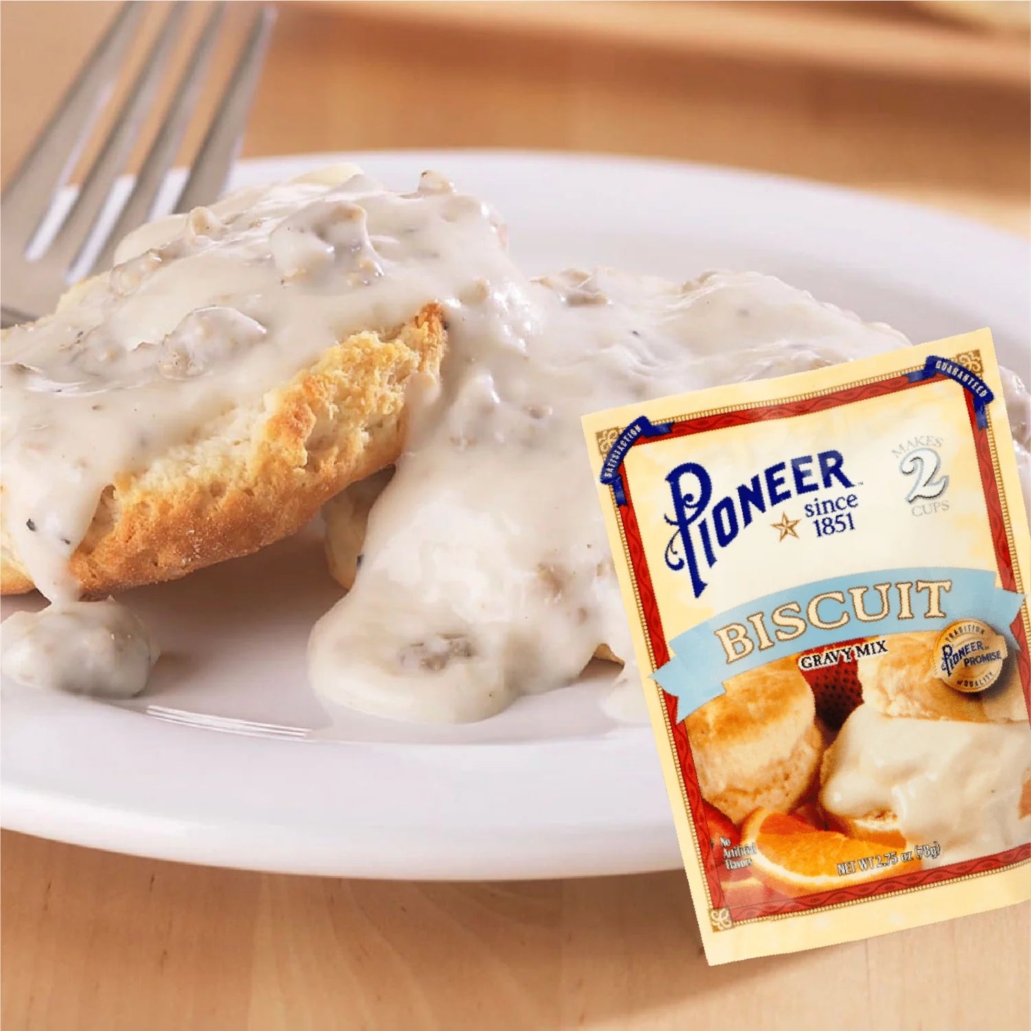 - Quick and Easy Preparation: Simply add water to Pioneer Biscuit Gravy Mix to create two cups of rich, creamy, lump-free gravy in minutes, perfect for busy mornings.