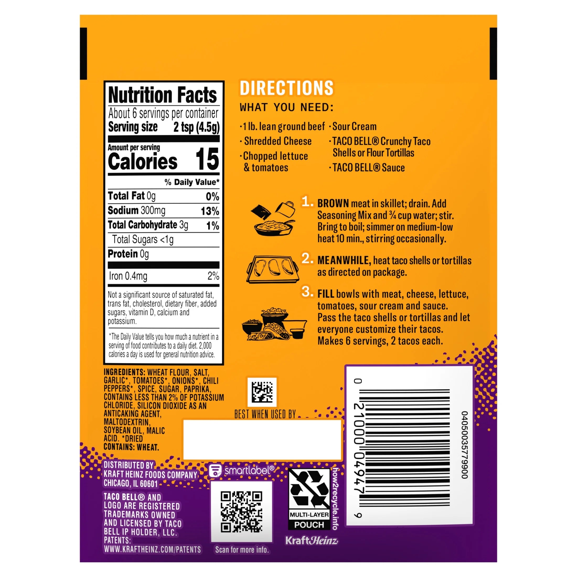 - One 1 oz packet of Taco Bell Mild Taco Seasoning Mix